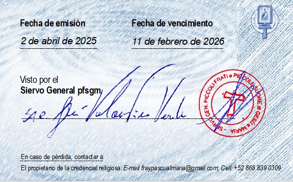 - Servant Superior of the pfgm Formation House in Mexico, since January 1st, 2021 & renewed on December 31, 2023